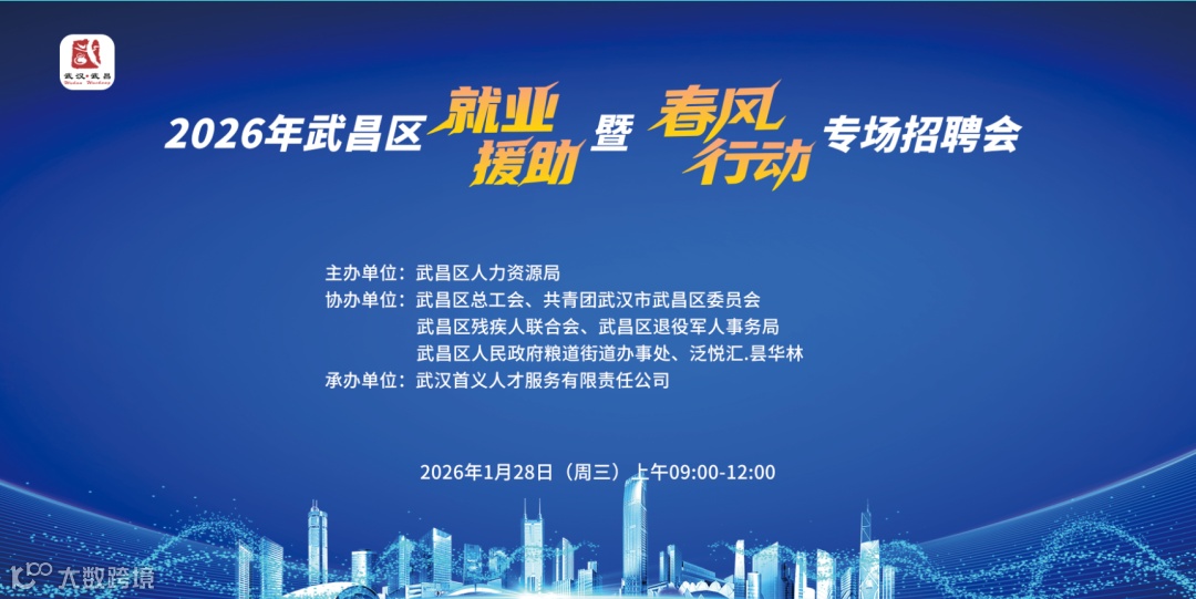 为深入贯彻习近平总书记关于促进高质量充分就业的重要讲话精神,全面落实党中央、国务院及省、市稳就业保就业系列决策部署,紧密衔接人力资源社会保障部 2026 年全国公共就业招聘专项活动工作要求,紧扣 “就业援助暨春风行动” 活动安排,武昌区拟举办 2026 年武昌区“就业援助”暨“春风行动”专场招聘会。