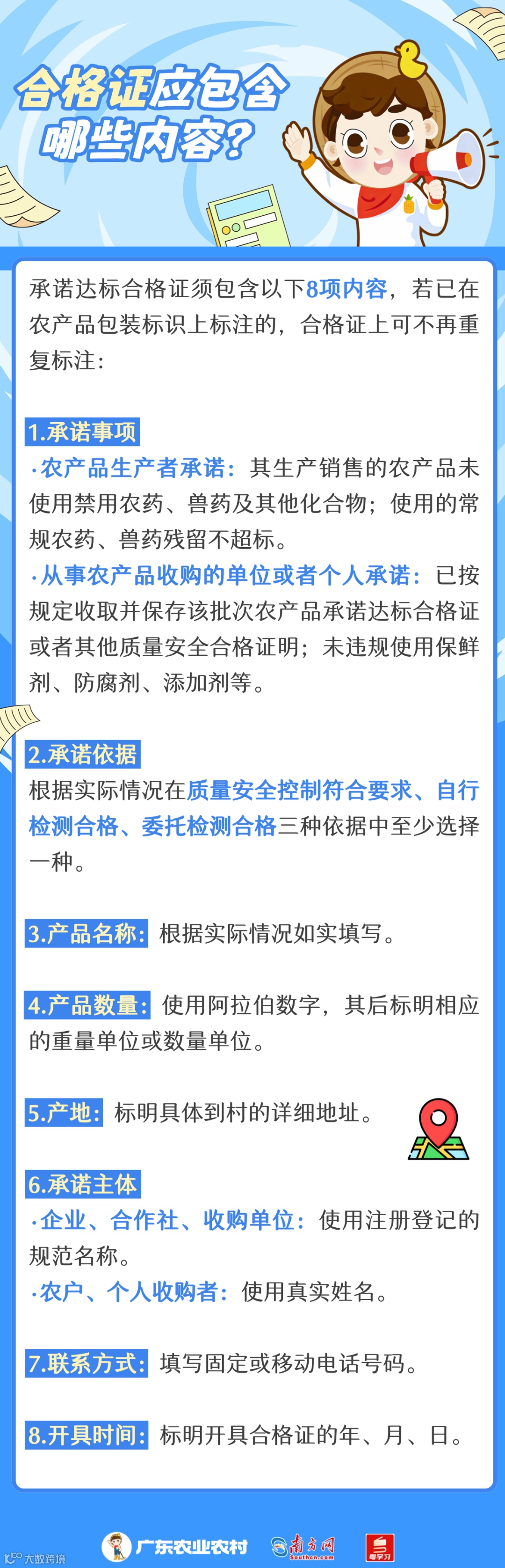 农产品生产者在开具合格证时,应真实、完整填写产品名称、产地、生产单位、联系方式、开具日期等基本信息,并对产品质量安全以及所列承诺内容的真实性负责。