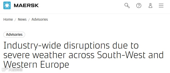 马士基发布公告表示,当前西南欧和西欧正被严寒的冬季天气笼罩,暴风雪与强风暴频繁来袭。恶劣天气给整个航运行业运营带来严重冲击,众多船舶被迫停泊,码头作业也受到极大影响,有的停止运营,有的生产效率大幅降低。