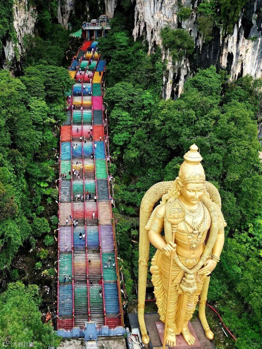 • Day2:吉隆坡一日游→上午逛黑风洞,打卡272级彩虹阶梯与山顶洞穴寺庙,避开正午日晒。下午驱车40分钟至布城,打卡水上粉红清真寺,浅色系穿搭出片。傍晚逛茨厂街夜市,尝沙爹烤串、炒粿条。
