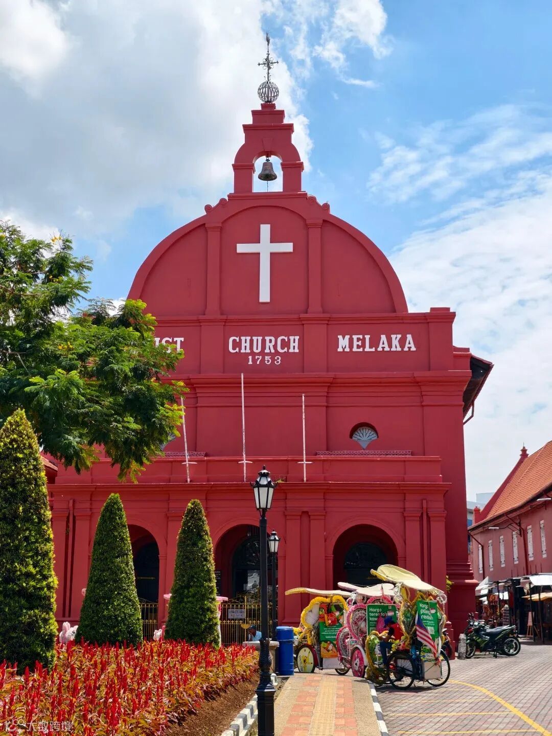 • Day3:吉隆坡→马六甲(大巴1.5小时,票价约15马币)→ 抵达后先去荷兰红屋,这是东南亚现存最古老的荷兰建筑,红墙白窗搭配周边绿植,随手一拍就是南洋风情;步行至圣保罗教堂,登顶可俯瞰马六甲老城全景,教堂遗迹自带复古滤镜。傍晚逛鸡场街尝特色小吃,住老城民宿体验慢生活。