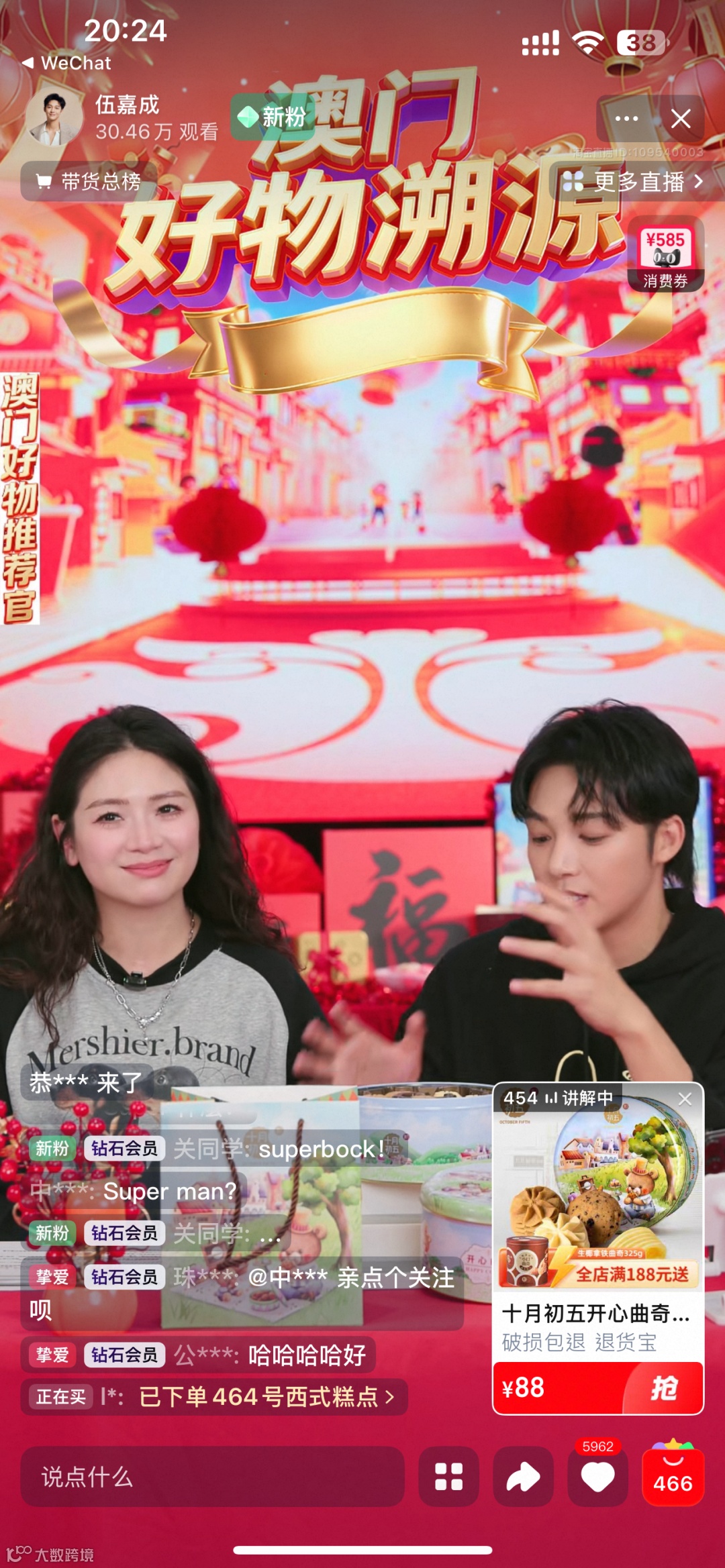 伍嘉成作為本次「賣空行動」的主播,為直播間注入了滿滿活力。在採訪中,伍嘉成分享了到訪澳門的感受,表示澳門的多元文化氛圍和城市活力令人印象深刻。結合自身經歷鼓勵澳門青年,這一真誠分享與澳門青年政策中「提升綜合素養,促進多元發展」「鼓勵青年融入國家發展」的方向高度契合,為澳門青年傳遞了積極向上的青春力量。