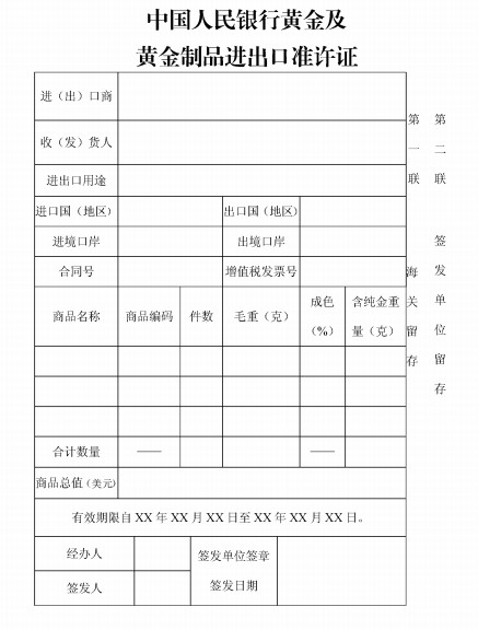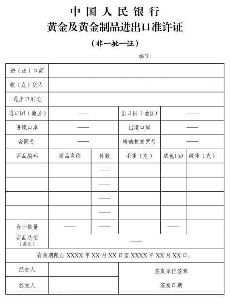 4.《黄金及黄金制品进出口准许证》分为“一批一证”和“非一批一证”: