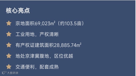本次恒天资产管理有限公司处置的资产是位于京津冀腹地的工业地块,产权清晰,规模逾百亩,为实体产业布局提供理想空间。