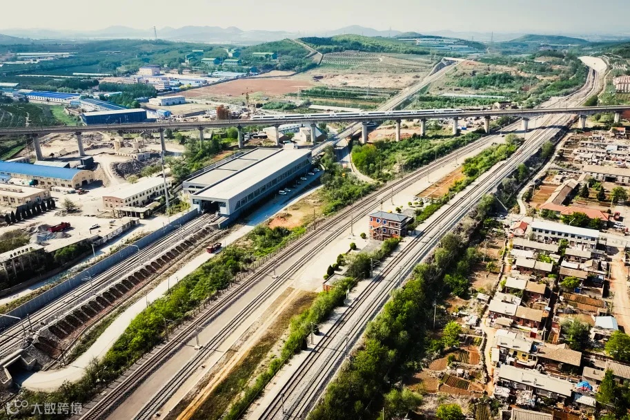 抬头可见站房正对面的二十里堡轻轨站。此处沈大高铁与既有线空中交会,高铁、普速列车、轻轨并行而过,构成一幅立体交通图景,生动展现时代变迁。