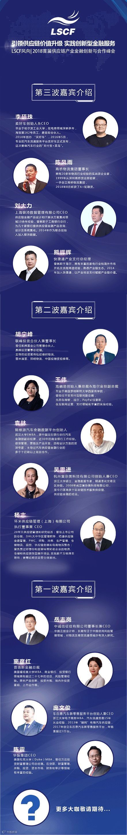 从LSCF合作峰会组委会目前的信息披露中可见,中诚信征信董事长岳志岗、普洛斯金融总裁窦彦红、卖好车创始人李研珠、联峰投资董事长胡宁峰、海融易创始人王伟、车百惠汽车新零售平台创始人庞文俊、平安银行网络金融部曹恩华等多位业界专业人士将从供应链金融模式、产品和风控等多维度做主题分享。LSCF合作峰会下午的股权融资项目路演、供应链金融产品推介会将有多个优质项目。