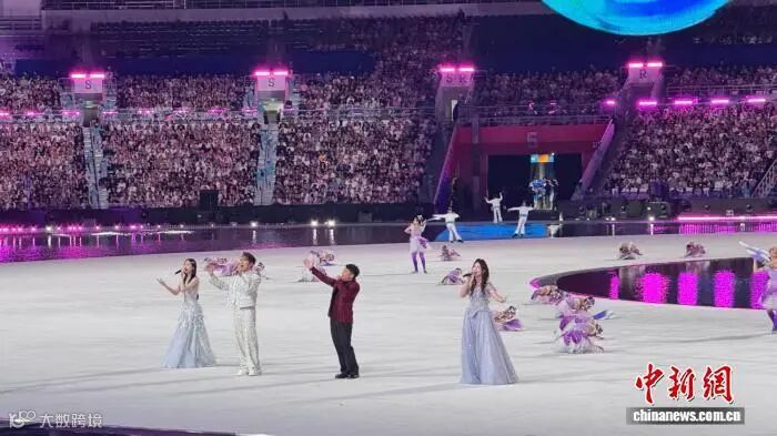 2025年11月,第十五屆全國運動會開幕式暖場環節,容甄甄 (右一) 與廣東、香港歌手同唱歌曲《紫荊花盛開》。 (受訪者 供圖)