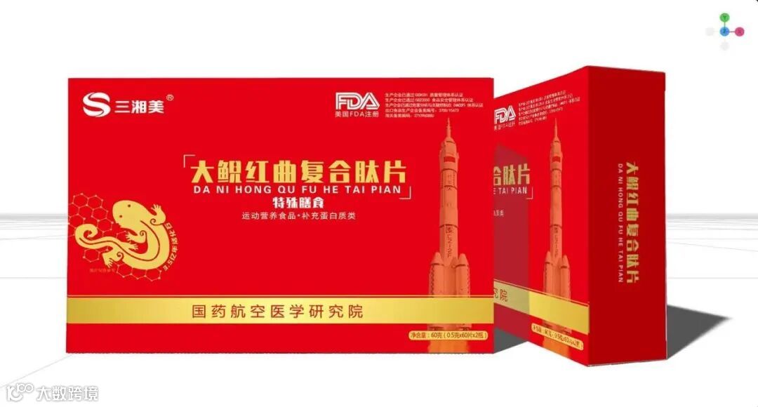 4、产品配料:主要药食同源的成份是大鲵蛋白肽、红曲粉、地龙蛋白肽、纳豆粉、鹿血肽、葛根粉、乳清蛋白肽等。