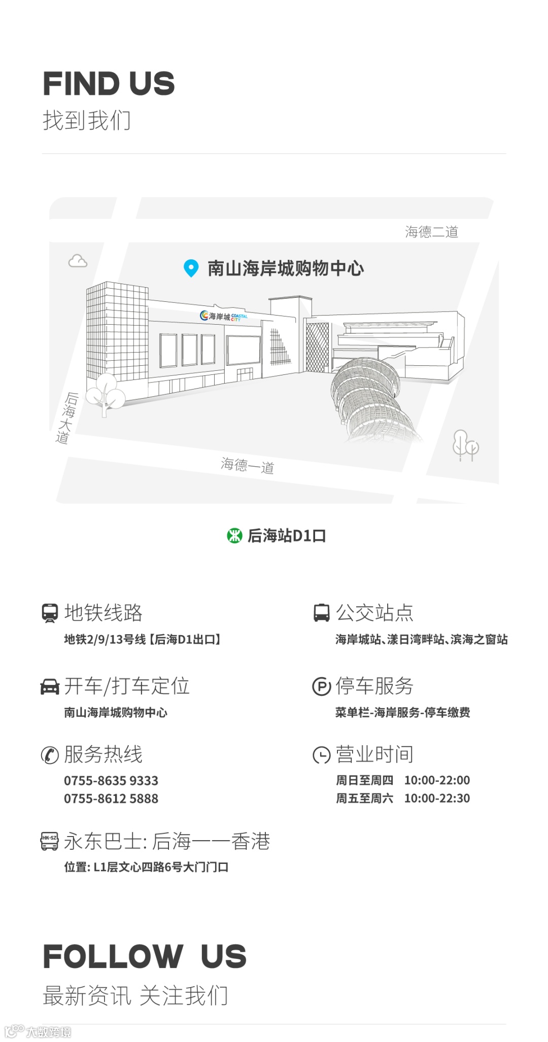 门店地址:深圳市南山区粤海街道海珠社区文心五路33号海岸城广场049铺
