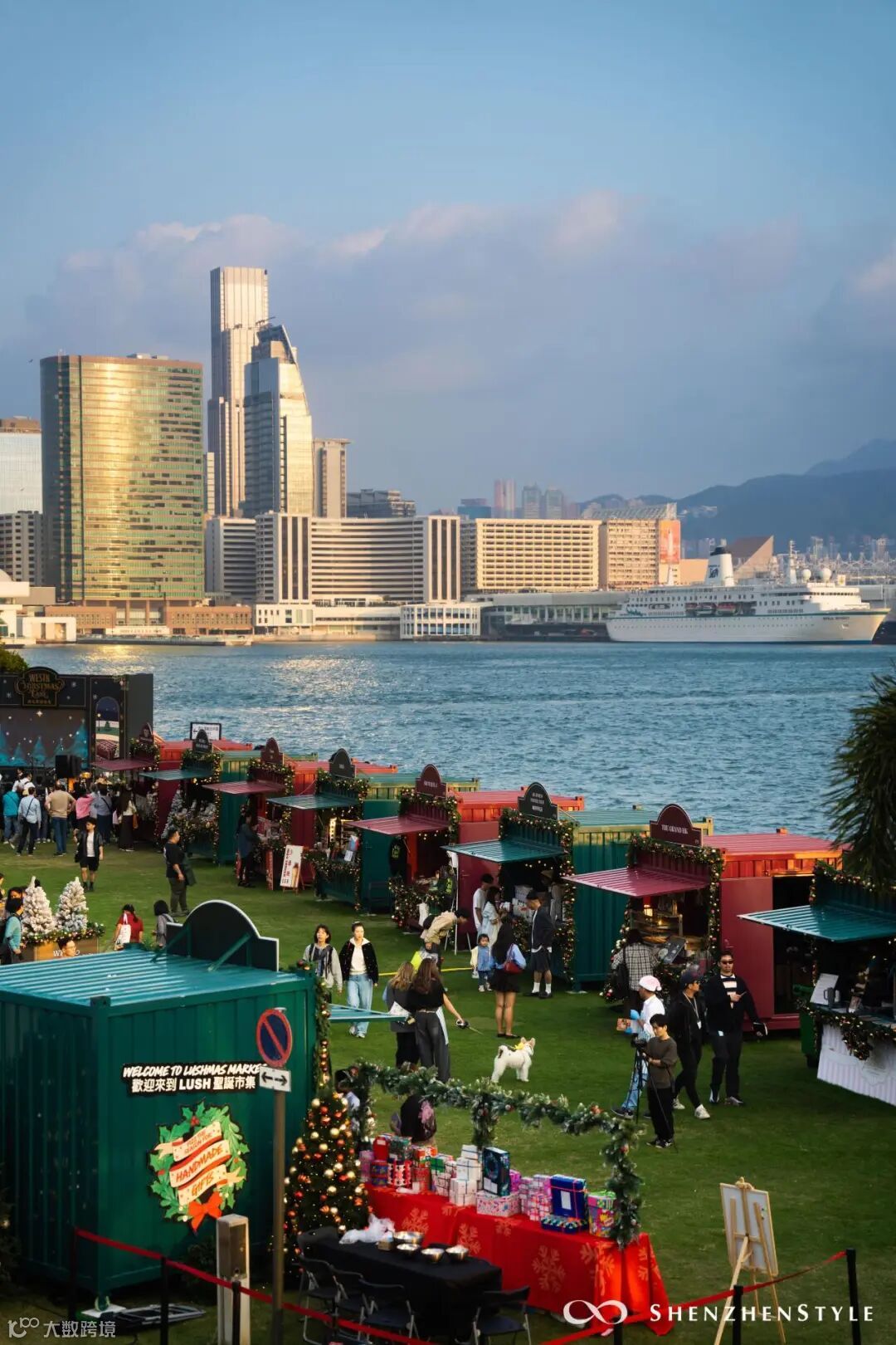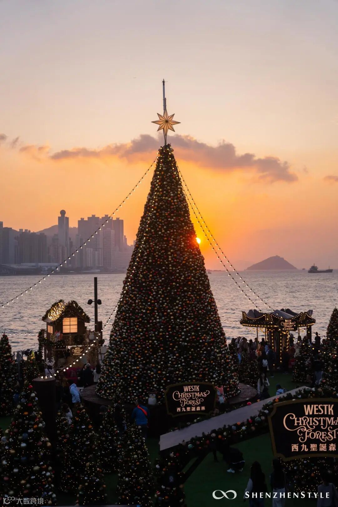 拍完圣诞树,再去逛逛旁边的圣诞市集,点一杯精酿啤酒,坐在海边堤坝,听音乐、吹海风...松弛感拉满。
