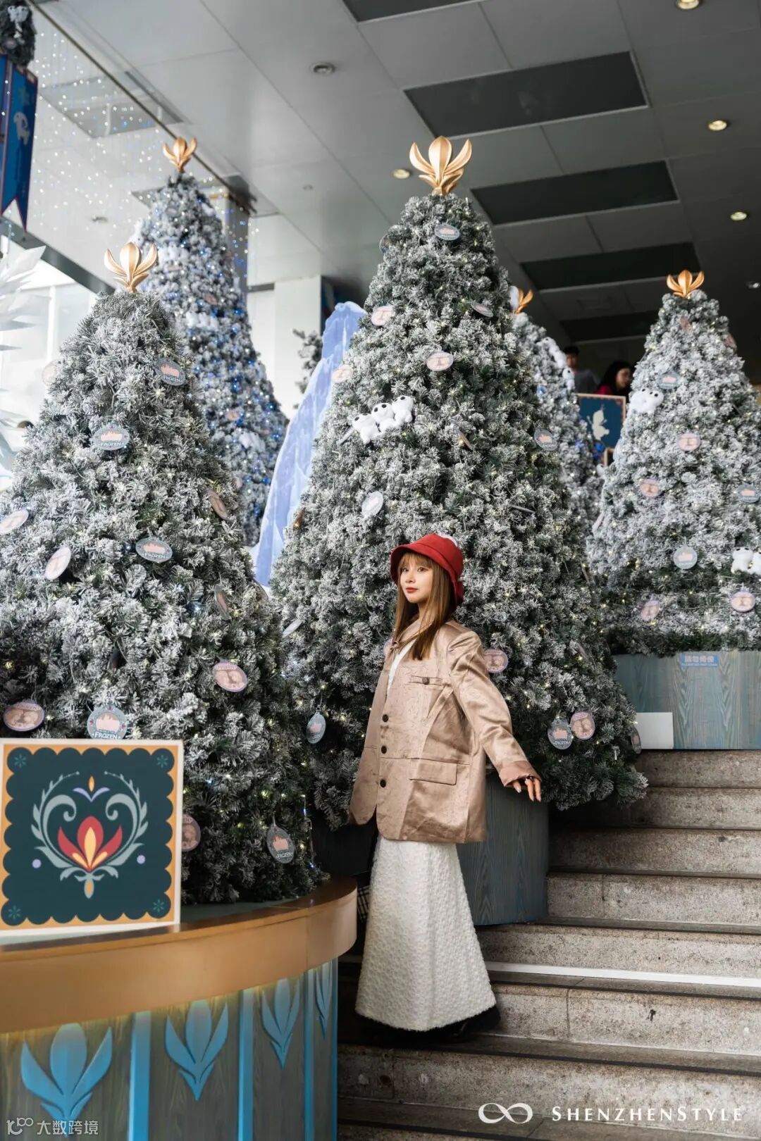 冰雪奇缘主题片区,则可以与艾莎安娜合影,仿佛走进了冬天飘雪的圣诞森林里。从冰雪奇缘往下俯拍,还能捕捉到街道浓浓的圣诞气息。