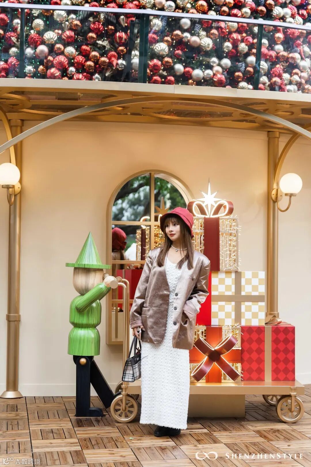 广场装置区下午4点开放入内,圣诞礼盒、麋鹿...可以进去跟各种可爱装置拍照打卡。