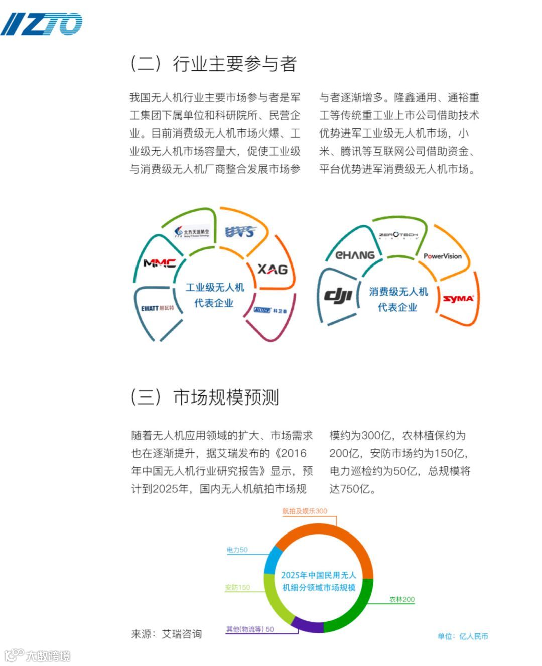 12月3日,中通快递发布《工业级无人技术在物流领域的应用报告》(以下简称「报告」)。报告包含三个部分:无人机篇、无人车篇和展望篇,分别从无人机、无人车技术的发展回顾、发展现状的角度,详细介绍了工业级无人技术主要技术分支;并从多个维度对物流企业无人机应用现状进行了全方位的剖析,提出了无人技术在物流领域的应用演进、协同应用、转型升级等前瞻性观点。