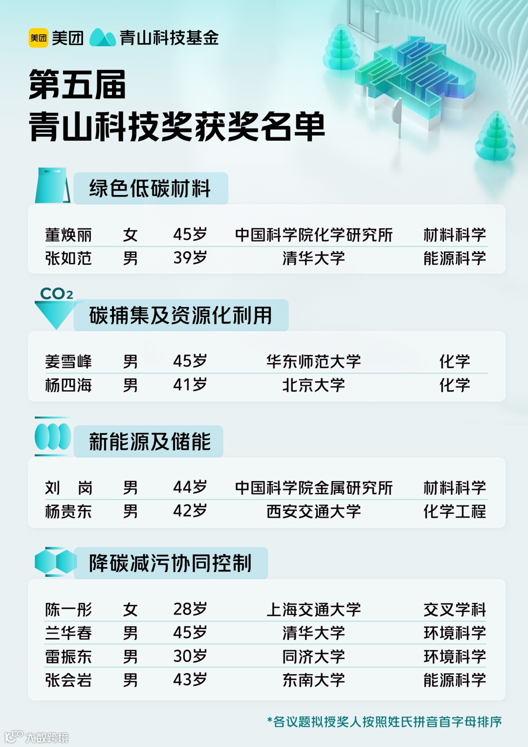 为推动绿色发展,实现美丽中国愿景蓝图,鼓励更多科研工作者投身绿色和可持续发展等领域的科技研发,美团于2021年发起资助青年科学家的公益性奖项“青山科技奖”。