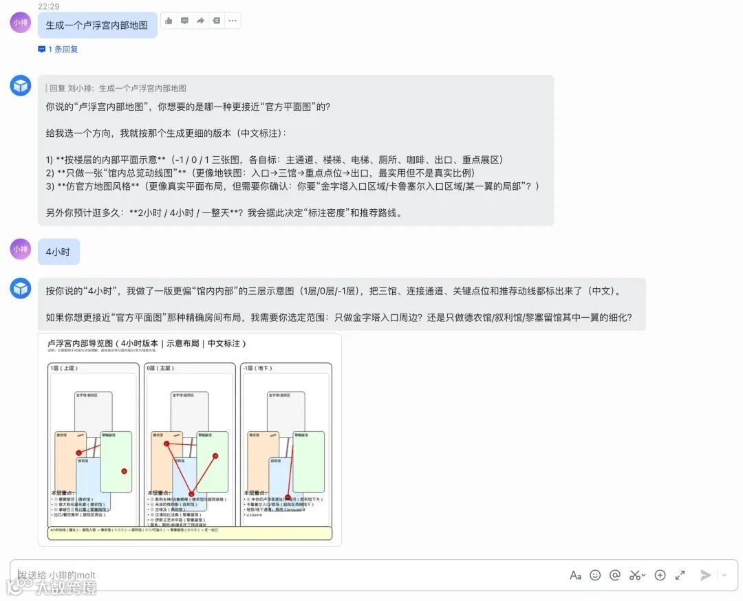 例如生成卢浮宫游览路线图,辅助出行规划。