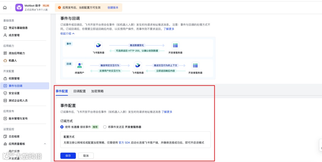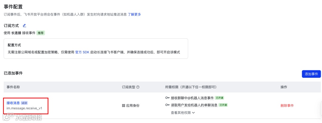 飞书应用权限与事件配置
