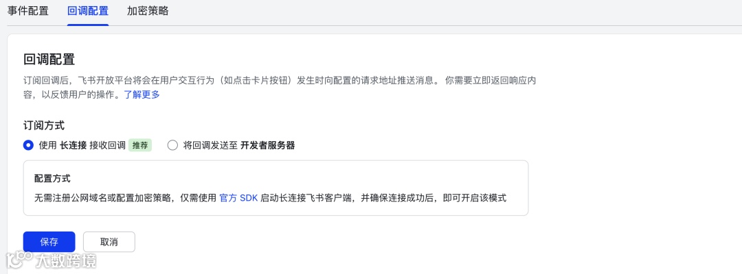 - 回调方式选择“使用长连接”