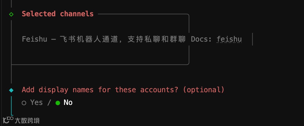 选择“Yes”并选择“飞书”作为通信渠道。