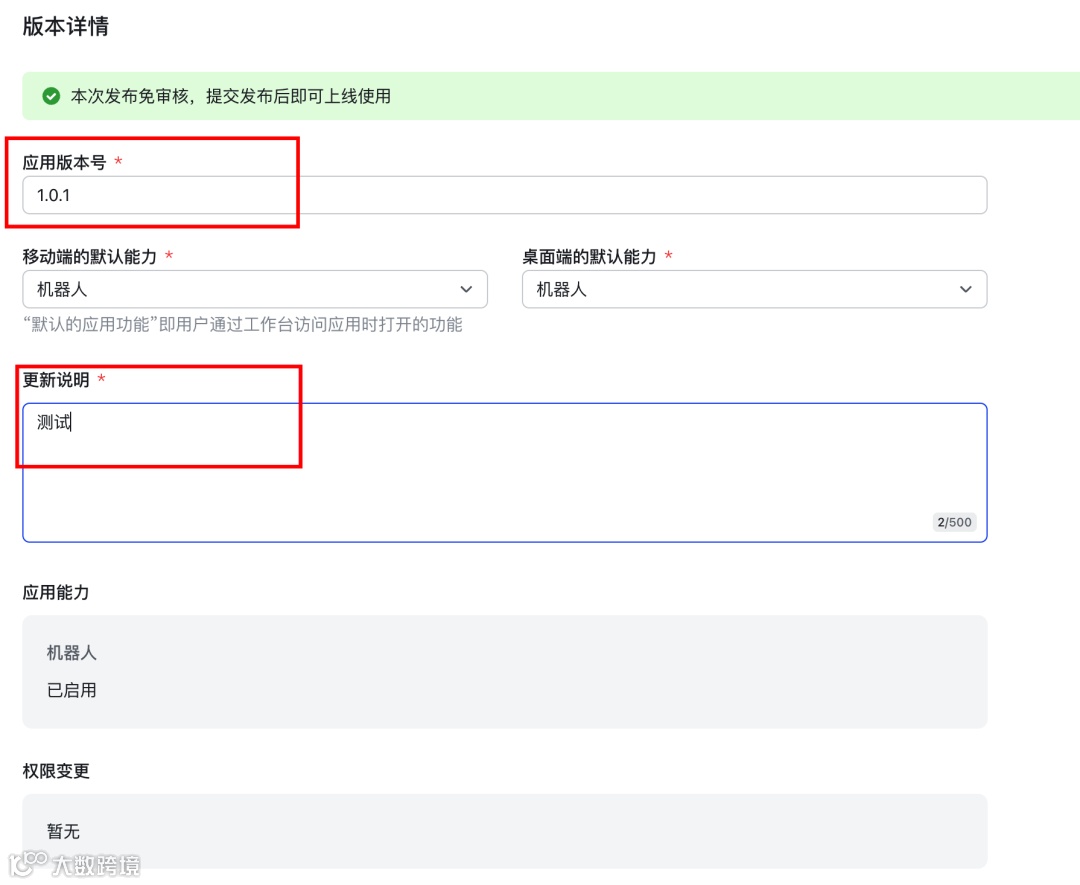 - 填写版本号和描述,保存并发布