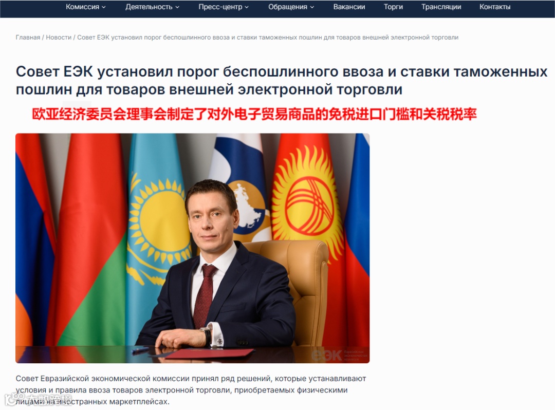 该政策由欧亚经济委员会(EEC)公布,成员国包括俄罗斯、白俄罗斯、哈萨克斯坦、吉尔吉斯斯坦和亚美尼亚。新政明确,免税仅适用于个人跨境网购商品,不涵盖商业进口。