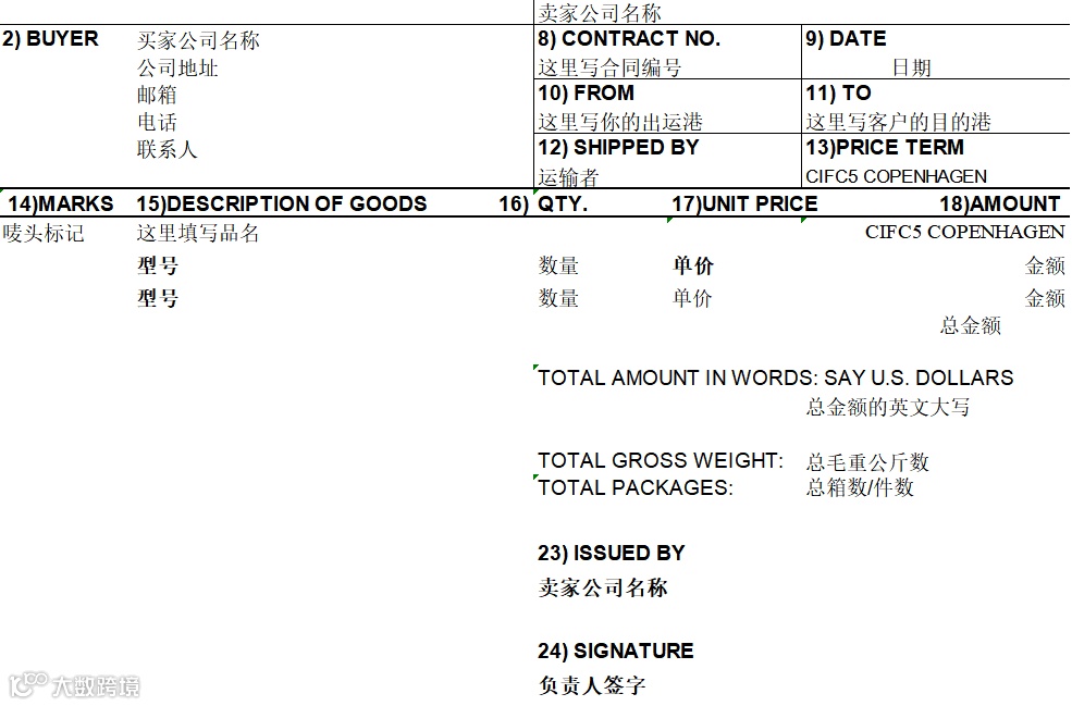 - 商业发票:含中英文,写明买卖方信息、货名、数量、价格、产地;