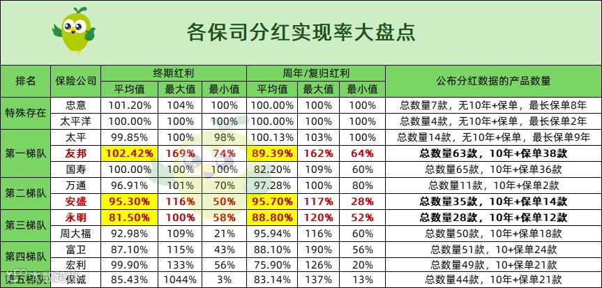 友邦以透明、稳定的分红表现著称,旗下近40款分红产品拥有十年以上历史数据支持。特别是盈御系列产品,自推出以来历年分红实现率均达到或接近预期,兑现承诺稳定可靠,赢得市场良好口碑。