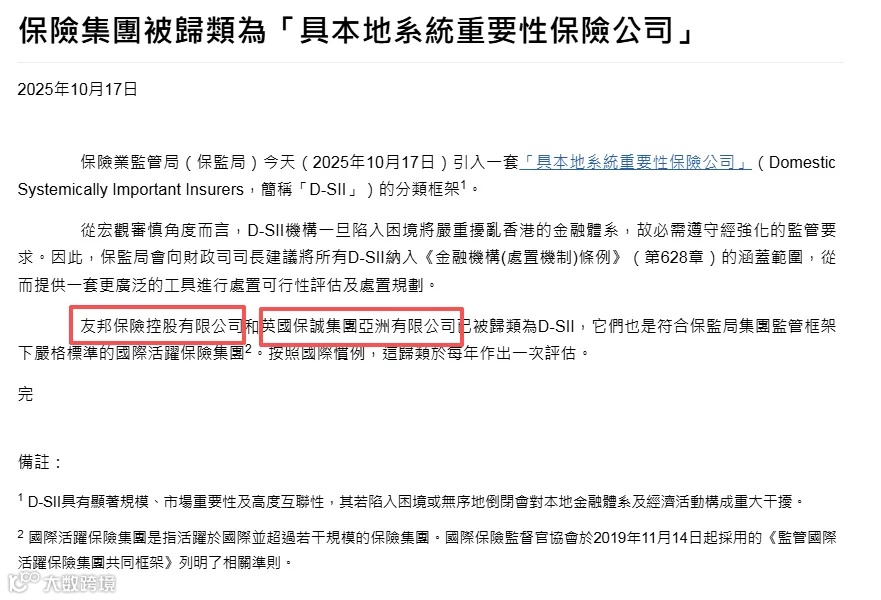 友邦于1919年在上海创立,1947年迁至香港,1992年重返内地设立分公司,是中国保险市场发展的重要参与者。这种“从中国出发、回归深耕”的背景,使其在内地客户中具有天然的信任基础。作为被广泛认可的系统性重要保险公司,其稳健形象进一步提升了客户安全感。