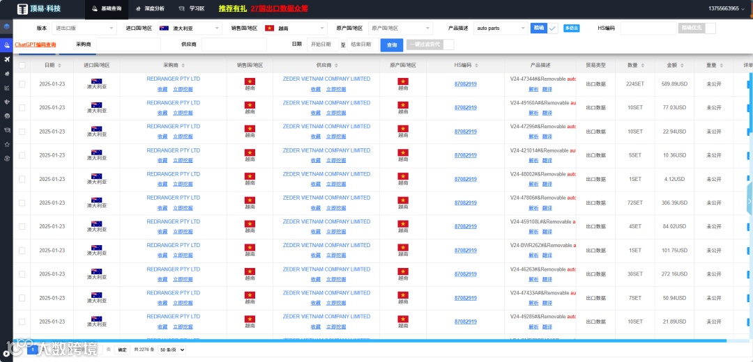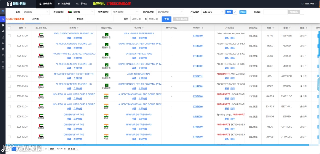 2、现在印度、巴基斯坦、越南、菲律宾,是中国出口企业的竞争对手,由于中国出口数据不公开,那么这些发展中国家的出口数据就很有价值了。可以翘他们的客户。