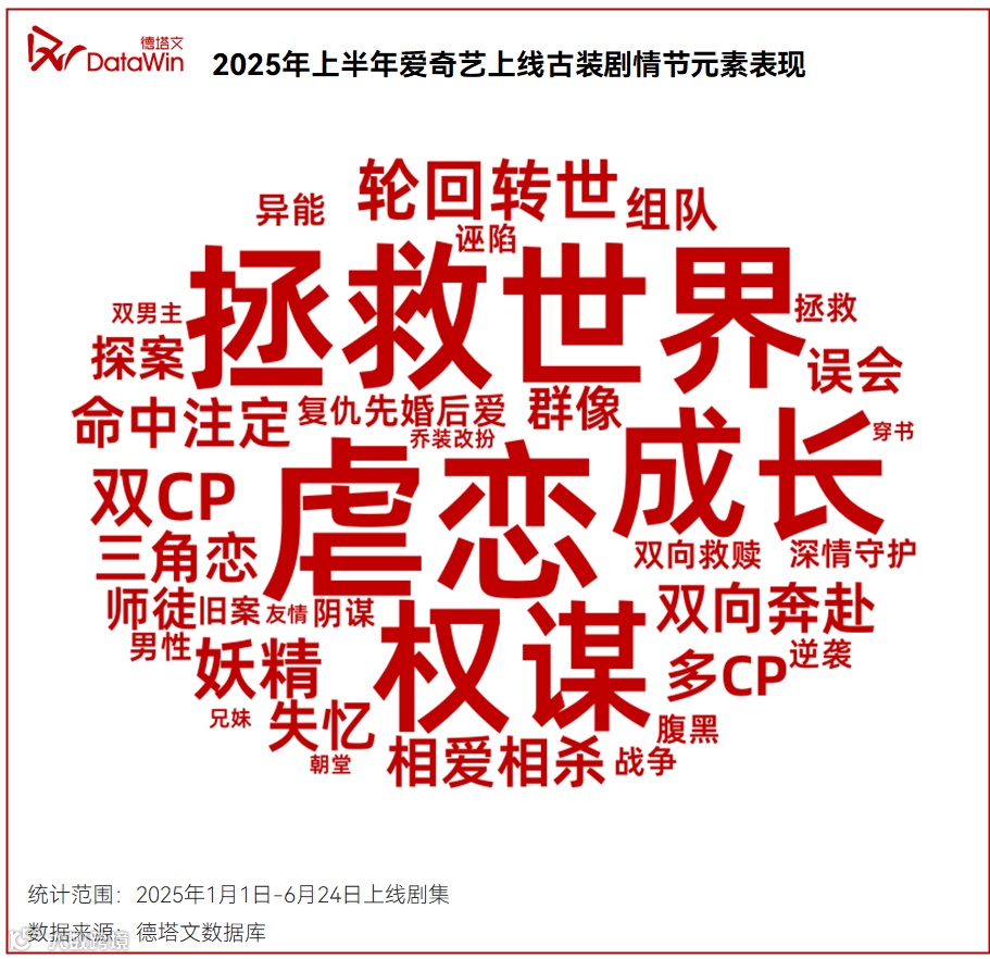 内容性别倾向加剧。《生逢其时》《同心结》等聚焦“双向奔赴”“亲情”“友情”,强化女性情感表达;《长风起》《一点浩然气》《把黑夜点燃》主打“复仇”“追凶”“权谋”,迎合男性观众偏好。爱情元素占比下降,反映该类型面临创新压力。
