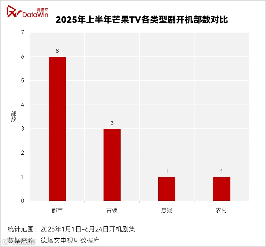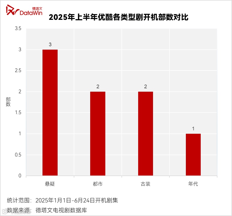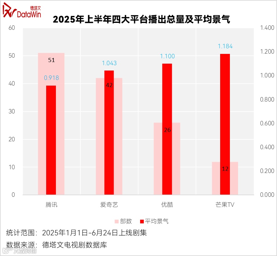市场开机同比持续收窄。2025年上半年,腾讯开机量下降53%,爱奇艺下降超44%,优酷降幅达62%。仅芒果TV相对平稳,但总量仍呈减少趋势。目前四大平台月均长剧开机数量维持在10余部。