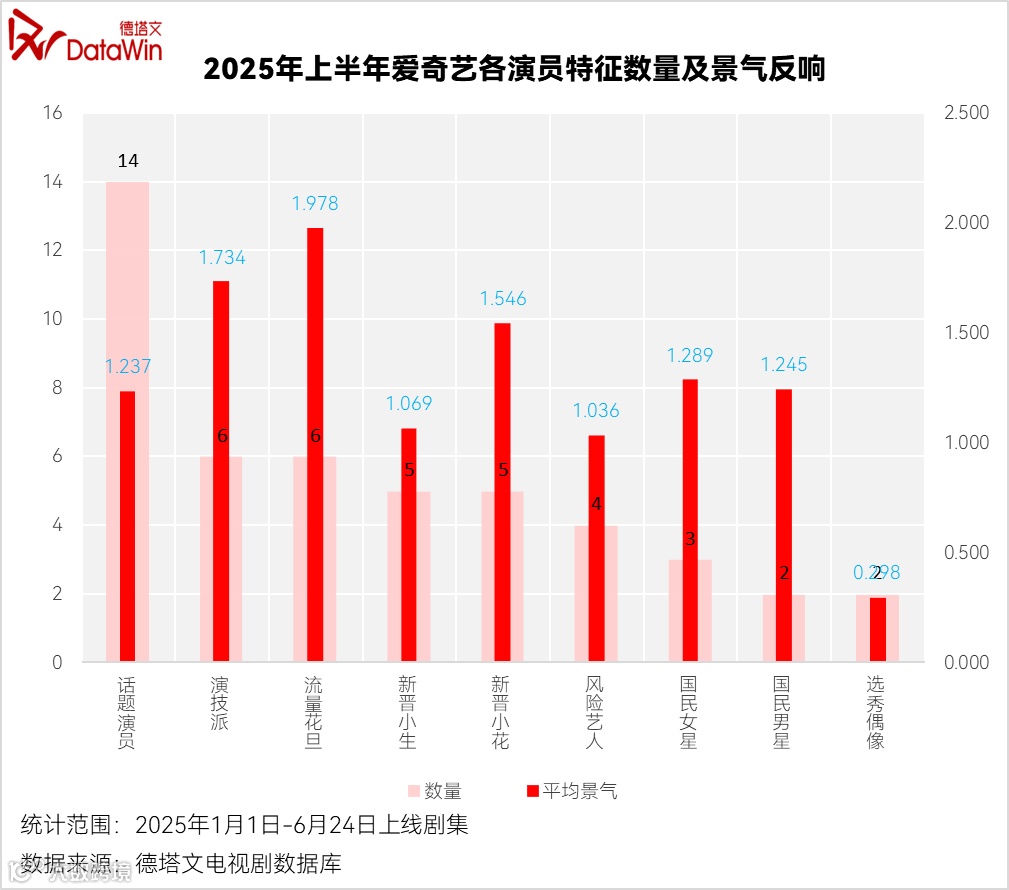 演员选择两极分化,“新晋小生”与“话题演员”数量相当,区别于其他平台。古装剧集中使用“流量花旦”“流量小生”,显示对该类型的高度重视。