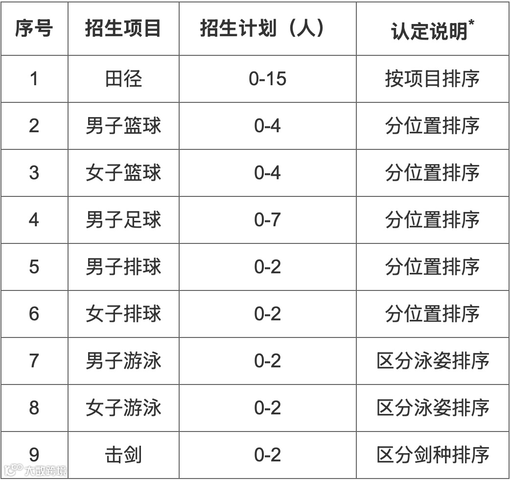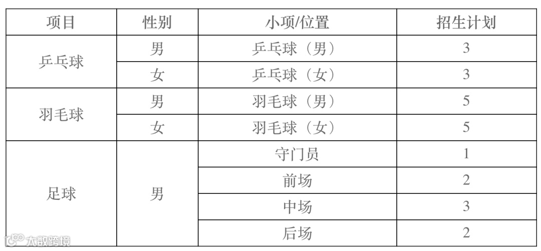 在认定合格考生名单时,某一招生项目生源不足时,优先在项目内调整,项目间按照乒乓球、羽毛球、游泳、足球、田径顺序在招生计划基础上依次补充生源。