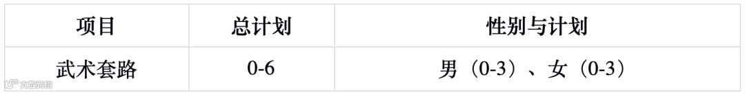 招生项目为武术套路(不限小项),男子组招生计划数为2人,女子组招生计划数为3人。