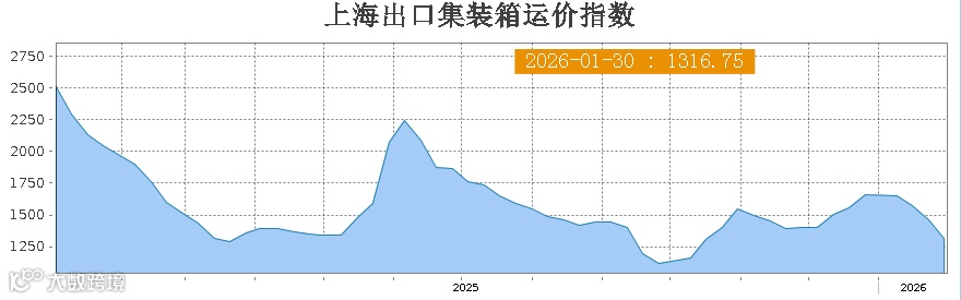 最新一期上海出口集装箱运价指数(SCFI)报1316.75点,单周下跌9.68%,已连续四周下行,跌幅逐周扩大。欧美主力航线全线跌破两位数跌幅,波斯湾航线单周暴跌22.59%,跌破1000美元/TEU。