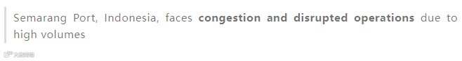 其中,印尼三宝垄港因货量激增与货物积压严重,已濒临码头运营中断风险。