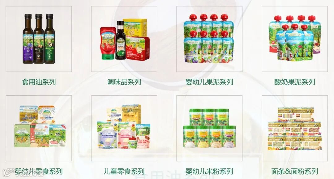 有了“进口”标签做信任背书,爷爷的农场很快就树立起了高端产品形象,产品线也极为丰富,米粉、食用油、果泥应有尽有,能满足宝宝不同成长阶段的营养需要,一下子就成了市场爆款。