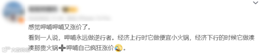 “和呷哺呷哺品质差不多,但东西贵太多了”“不如继续发展小火锅”。