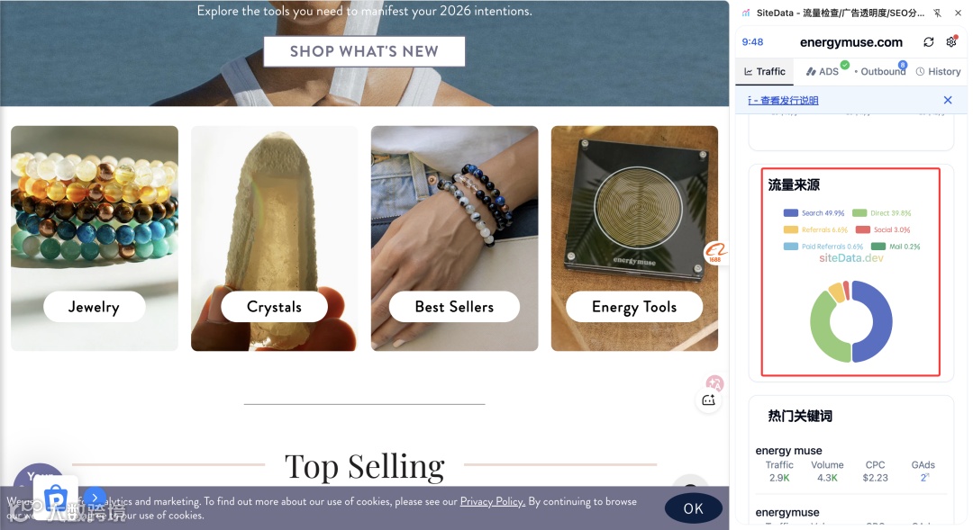 比如越来越多的老外,开始接受并喜欢中国日常饮食,养生等,今天给大家介绍的是一个卖有点“玄学”产品的独立站energymuse.com。