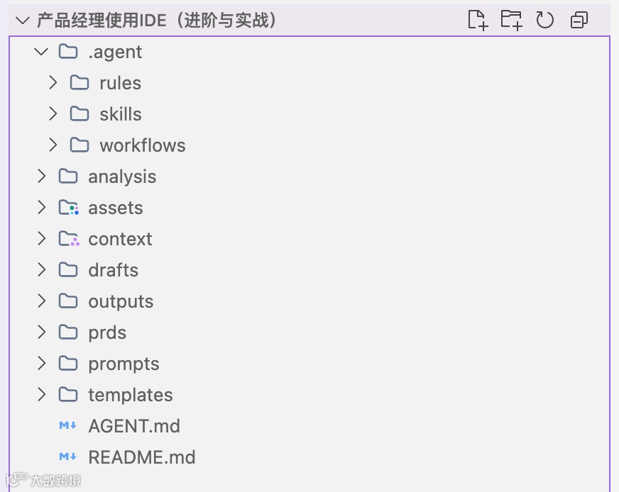 经过一段时间的摸索,我总结出了一套适合产品经理们使用AI IDE时,需要搭建的项目文件结构。这套方法的核心就是:通过标准化的项目结构和配置文件,让AI成为真正懂你业务的工作伙伴,而不只是一个文字生成器。