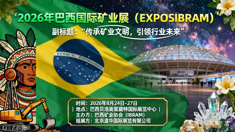在全球矿业格局深度调整、绿色可持续发展理念深入人心的时代背景下,巴西凭借其得天独厚的矿产资源储备、成熟的矿业开采技术及广阔的市场潜力,稳居全球矿业版图核心地位。2026年8月24-27日,两年一度的巴西贝洛采矿技术及设备展(EXPOSIBRAM 2026)将于贝洛奥里藏特Expominas会展中心盛大启幕。作为南美规模最大、专业性最强的矿业盛会,EXPOSIBRAM 2026由巴西矿业协会(IBRAM)与南美矿业展览集团联合主办,北京盛华国际展览有限公司担任中国区官方组展机构,诚邀全球矿业精英共赴这场技术盛宴,抢占南美千亿级市场先机。