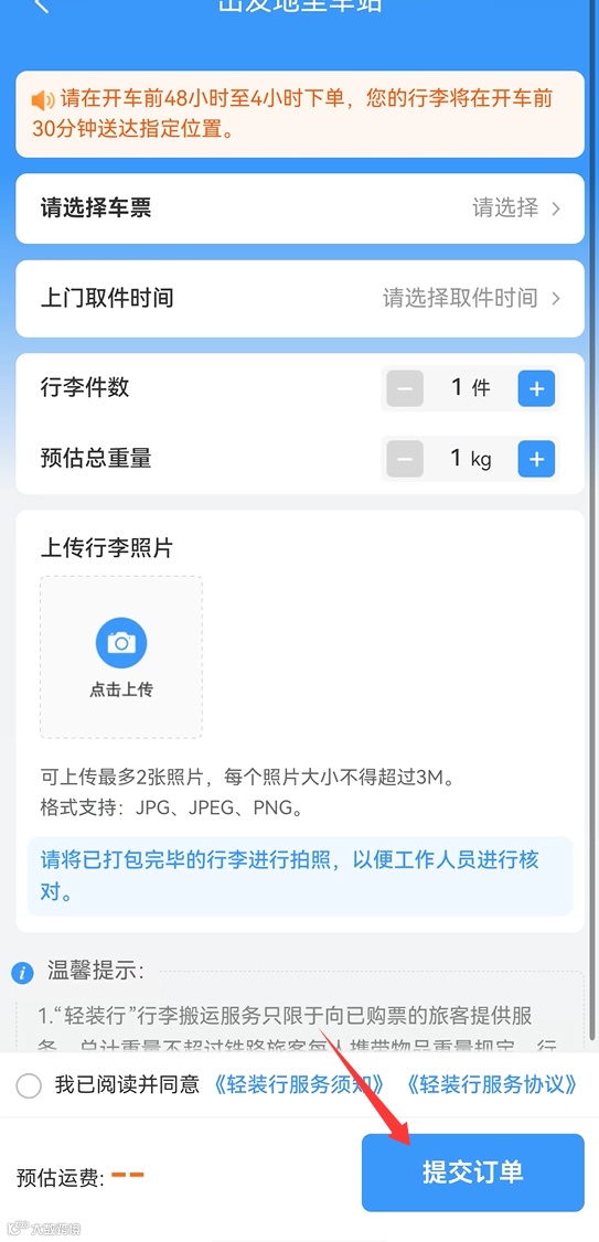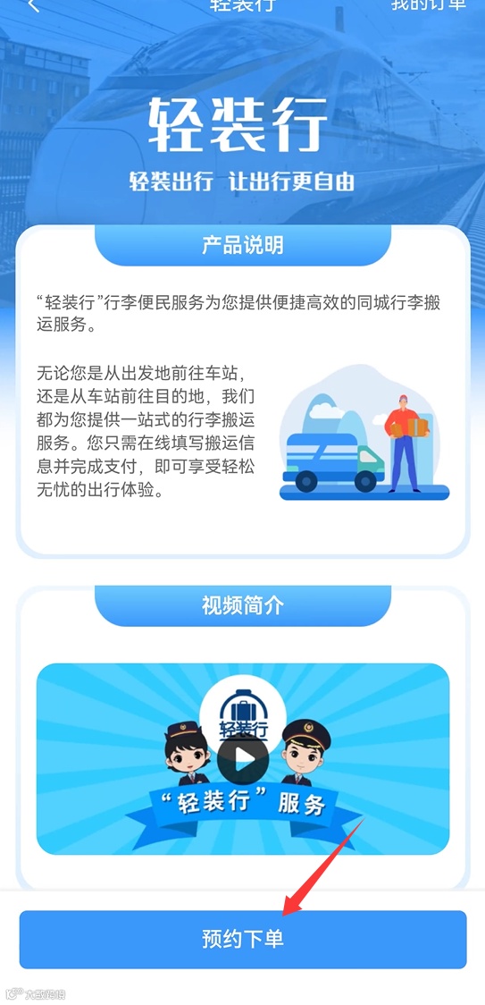 ②点击“预约下单”,根据页面指引选择所需服务/车票/取件时间等内容,然后提交订单即可