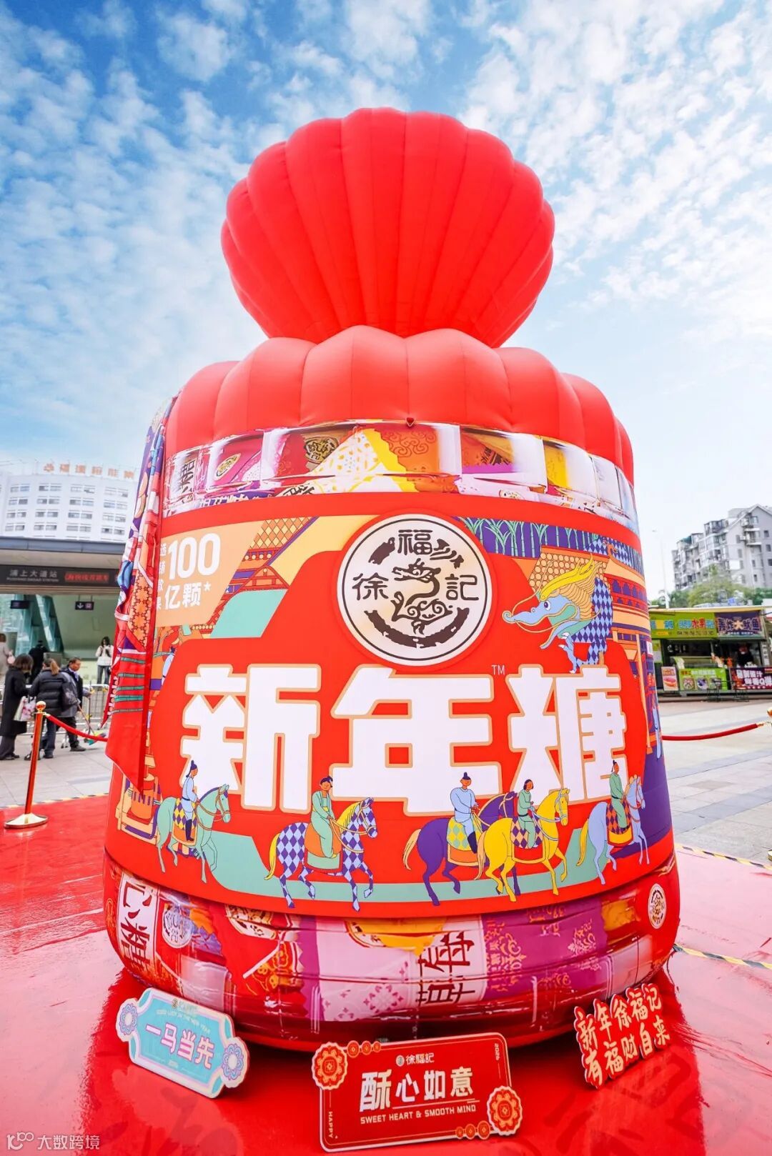 救命🆘!徐福记这辆7.66米长的主花车也太吸睛了🚗。一身“新年红”战袍裹满车身,旁边还有装饰着唐风糖衣纹样的花车车队,一眼望去,简直就是移动的糖果博物馆、行走的年味发射器。