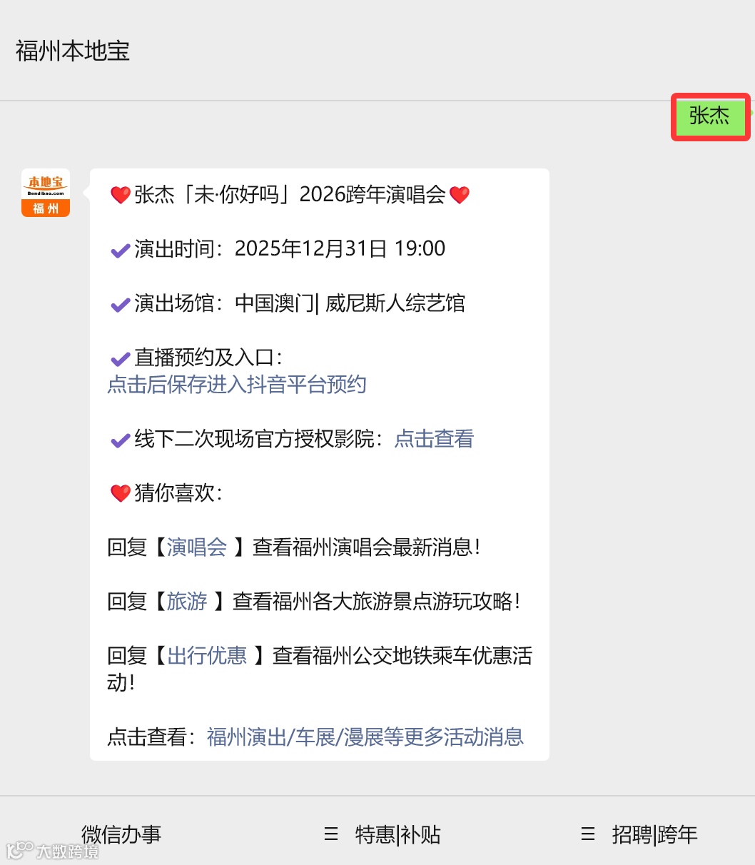 ⭐小编提示:扫描下方二维码进入【福州本地宝】,在微信对话框回复【张杰】也可获取直播观看入口