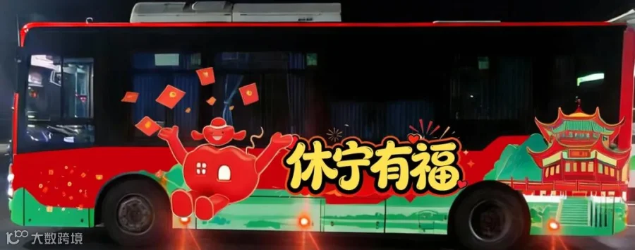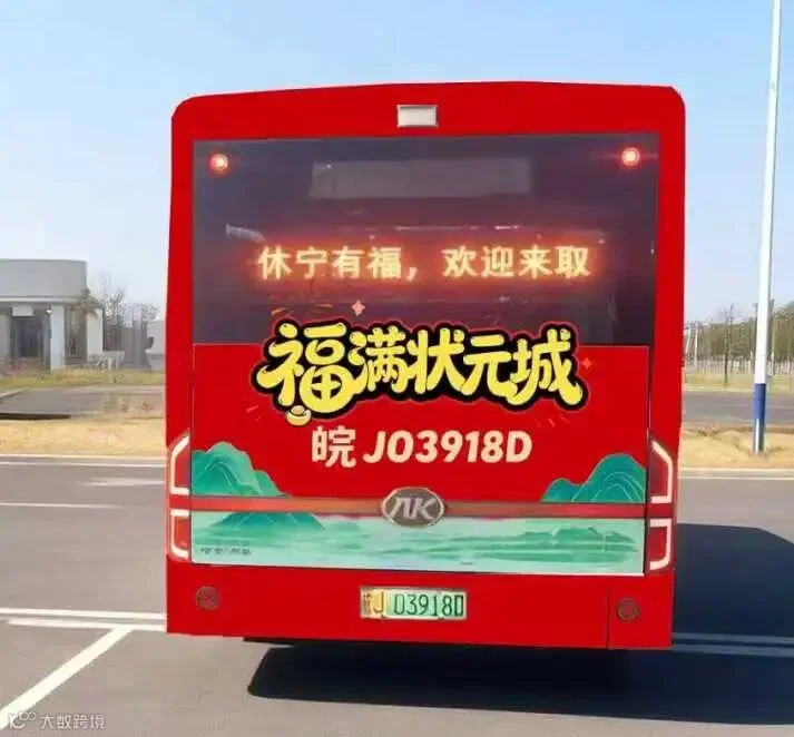 “休宁有福”福气巴士穿行全城,成为流动的节日风景线。