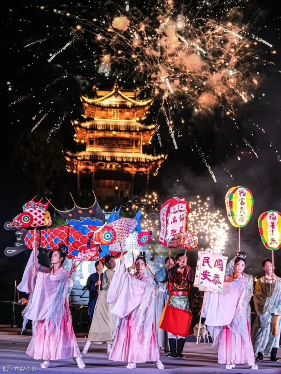 待夜幕降临,年味随之升腾。龙腾狮跃·祥瑞巡游将点亮福熙长街;更有双龙汇福·横江呈祥的震撼奇观——岸上布龙与横江金龙遥相呼应,最终在绚烂烟花与祈福火塔中交汇,气势恢宏。灵动的福鱼闹春·鱼灯巡游亦将蜿蜒游走于街巷之间。