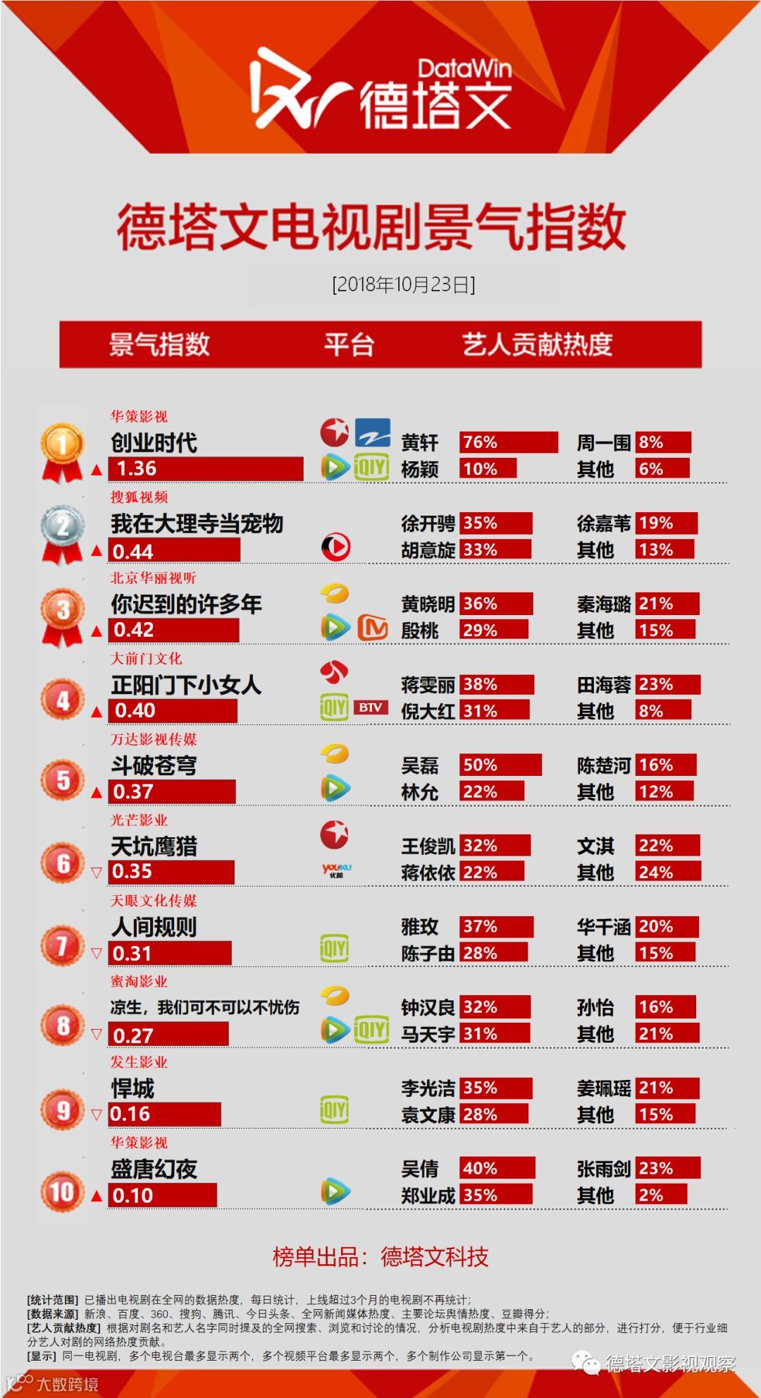 创业时代(黄轩76% 杨颖10%) 我在大理寺当宠物(徐开骋35% 胡意旋33%) 你迟到的许多年(黄晓明36% 殷桃29%) 正阳门下小女人 斗破苍穹 天坑鹰猎 人间规则 凉生,我们可不可以不忧伤 悍城 盛唐幻夜