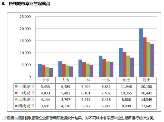各线城市毕业生起薪差异明显