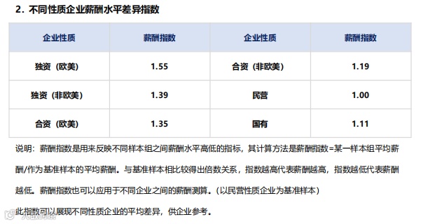 不同性质企业薪酬水平对比