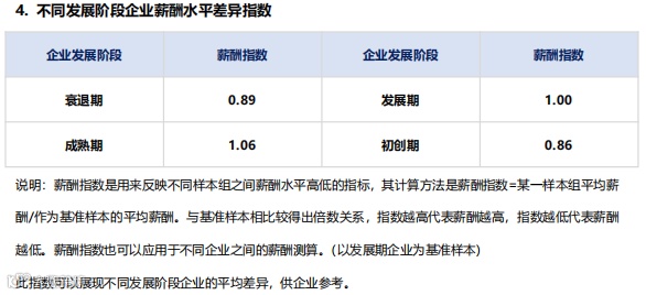成熟期企业薪酬指数为1.06,处于初创期的企业最低,仅为0.86,表明企业稳定性与资源整合能力直接影响薪酬水平。
