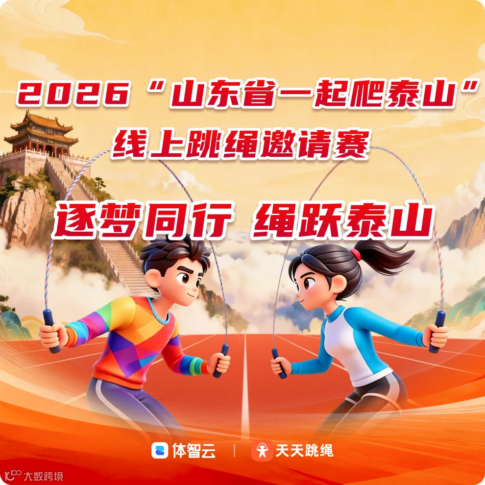 当每一次跳绳的计数,都化为攀登齐鲁之巅的一步,一场跨越虚拟与现实的跳绳挑战,正在将山东全省中小学生的寒假串联起来。由体智云与天天跳绳App提供全程技术支持的2026年山东省“一起爬泰山”线上跳绳邀请赛已于1月27日开启报名,2月4日正式开赛!